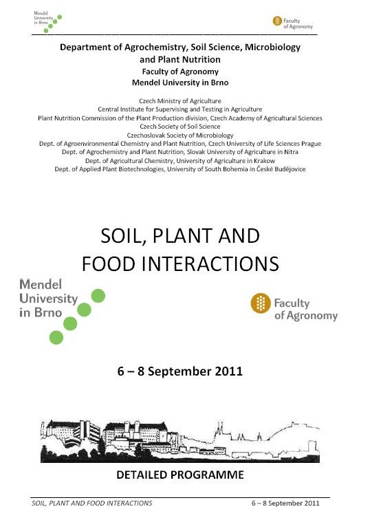 Conference Soil, plant and food interactions 6 – 8 September 2011
