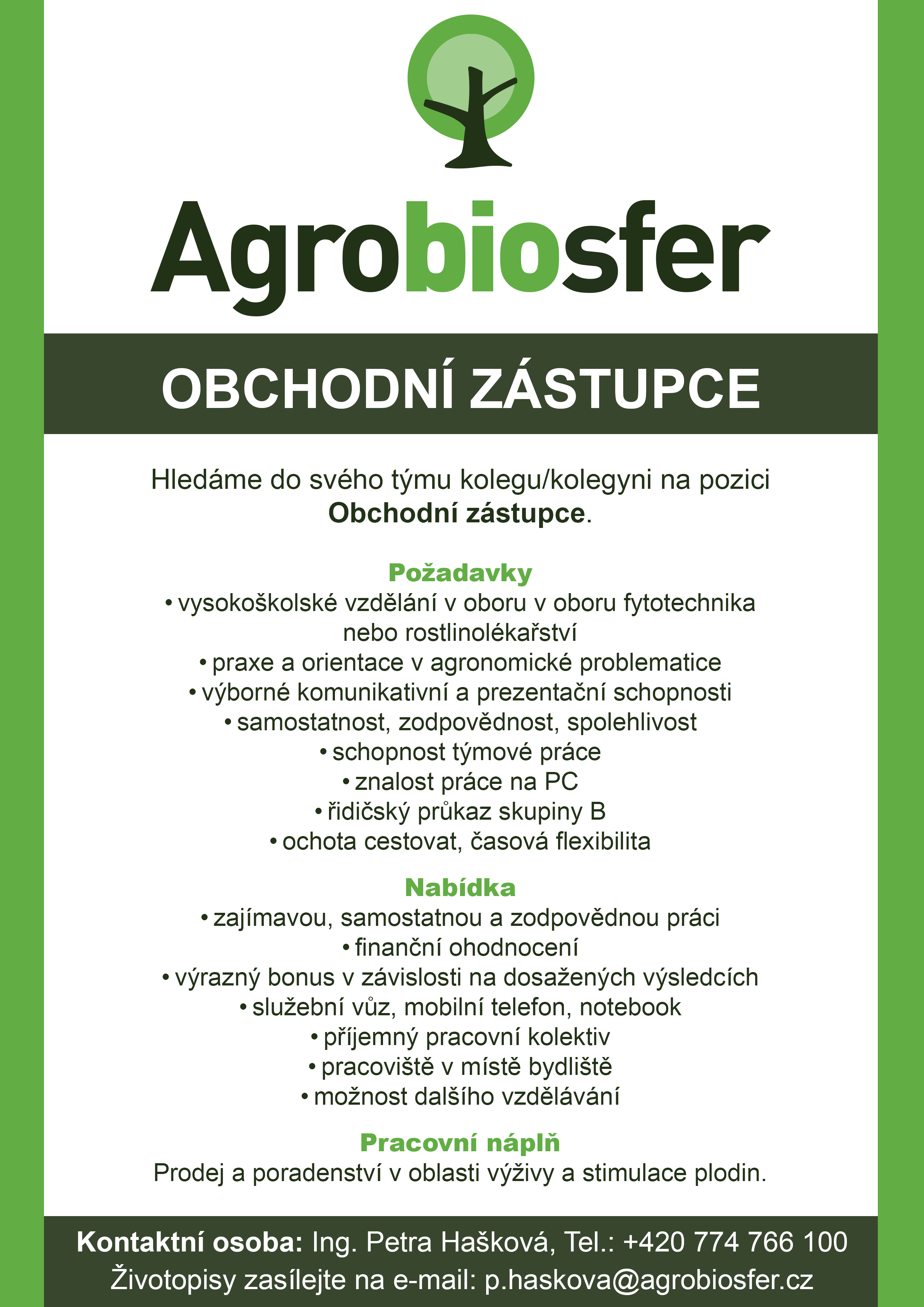 INOVACE STUDIJNÍCH PROGRAMŮ AF A ZF MENDELU SMĚŘUJÍCÍ K VYTVOŘENÍ MEZIOBOROVÉ INTEGRACEObchodní zástupce - prodej a poradenství v oblasti výživy a stimulace plodin (celá ČR)Nabídky volných pracovních míst Přílohy: |